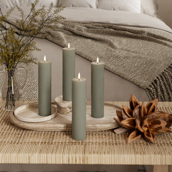 LED Bloklys Ø 5 x 20 cm Salvie Grøn - 4 stk