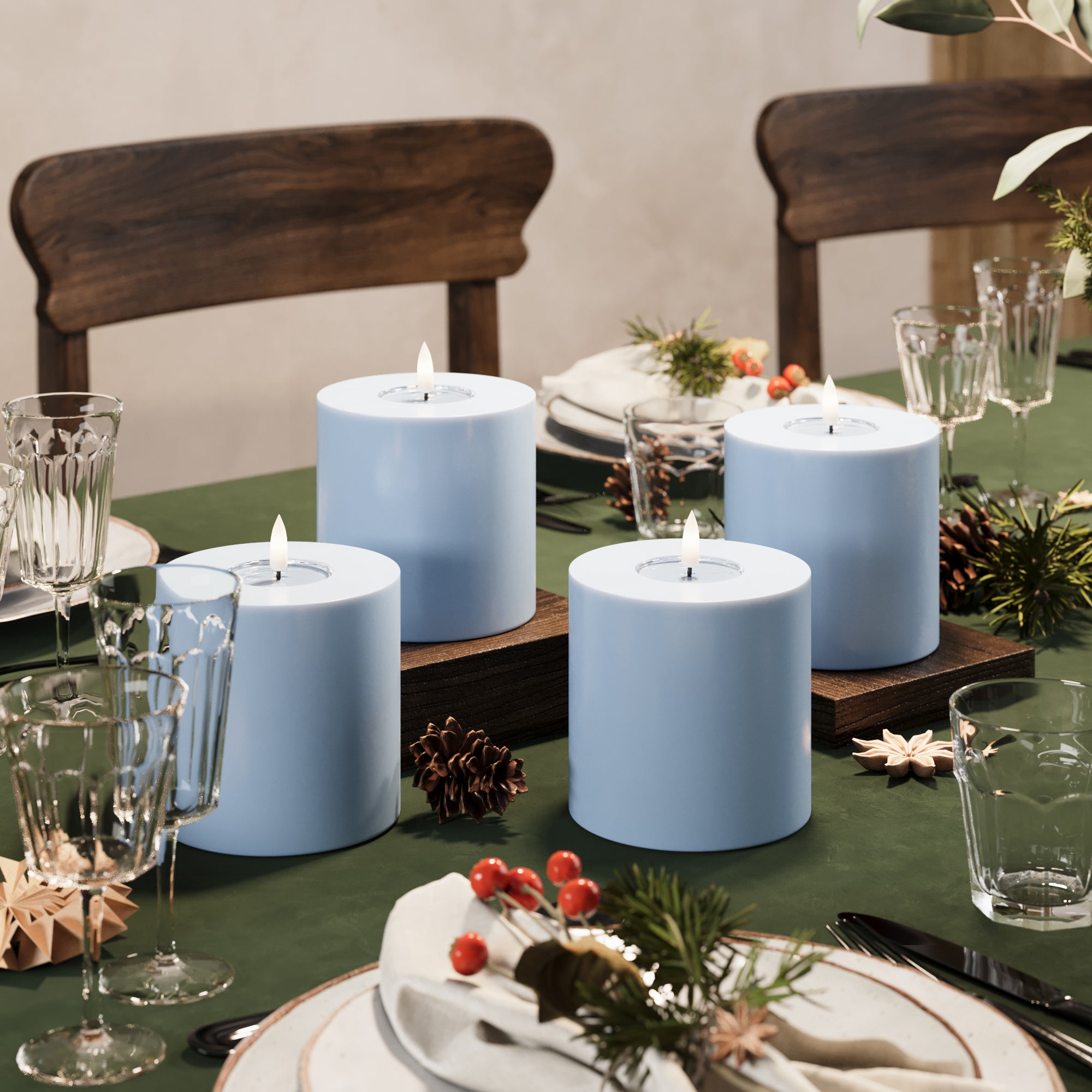 LED-Blockkerzen Ø 10 x 10 cm Eisblau – 4 Stück