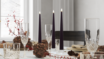 Αυτό το κομψό οδήγησε τον Kertelys στο Σκούρο μωβ Προσφέρει ένα πραγματικό αποτέλεσμα «πραγματικής φλόγας» που είναι τόσο ζωντανό όσο ένα πραγματικό κερί. Με ύψος 28 cm και διάμετρο 2 cm, κάθε φως των κεριών κοινών είναι προσεκτικά κατασκευασμένο σε βερνίκι, εξοπλισμένο με μια ζωντανή 3D φλόγα και μια μοναδική επίστρωση ρητίνης στην κορυφή. Αυτός ο συγκεκριμένος συνδυασμός όχι μόνο δημιουργεί ένα αυθεντικό συναίσθημα, αλλά και δίνει το χαρακτηριστικό «υγρό βλέμμα» που μιμείται τα λιωμένα κεριά τέλεια.