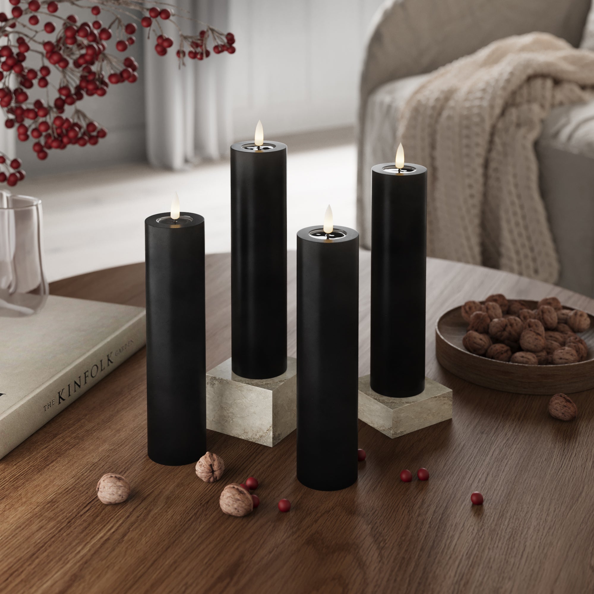 LED Pylväskynttilä Ø 5 x 20 cm Musta - 4 kpl
