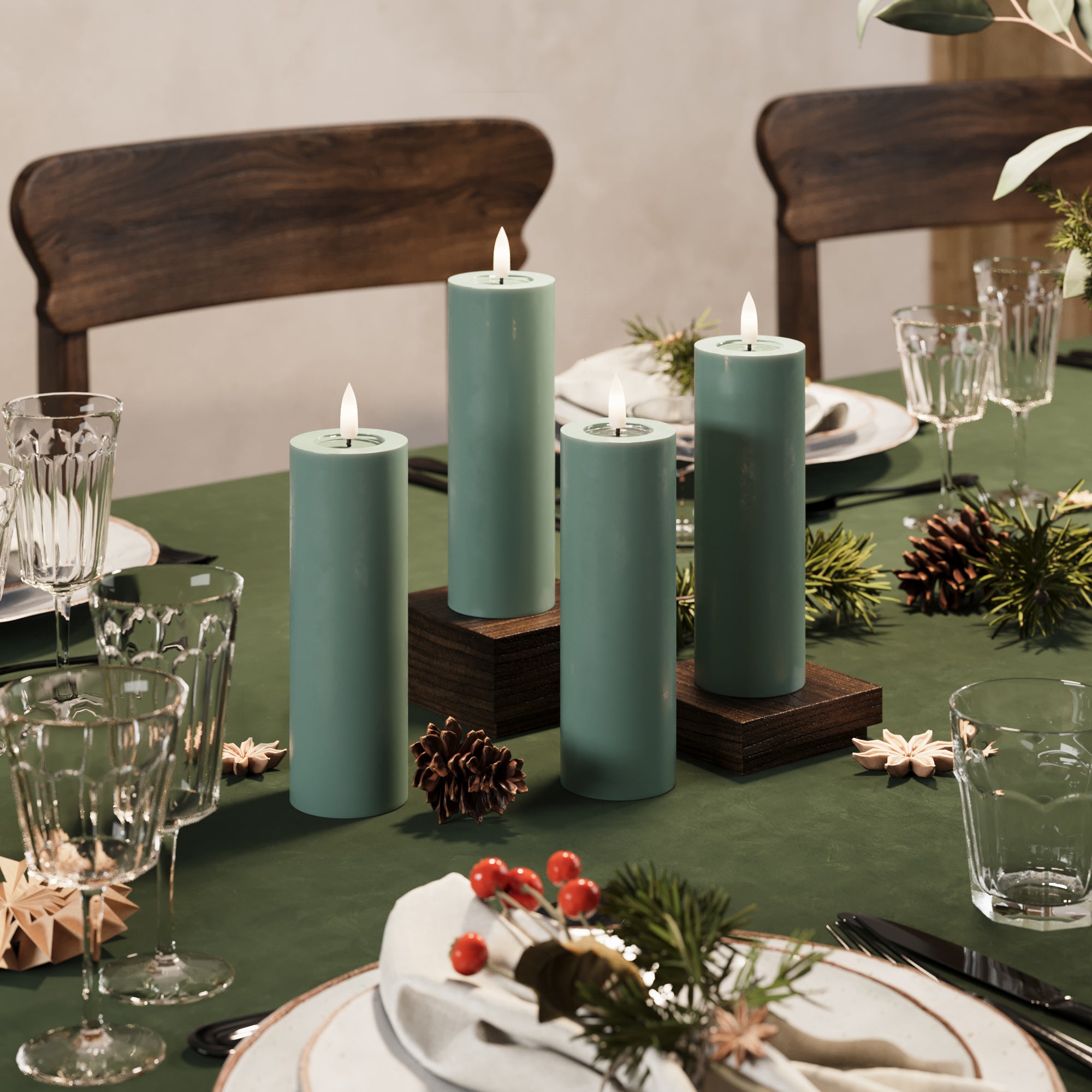 LED Bougie pilier Ø 5 x 15 cm Vert jade + 4 PCS
