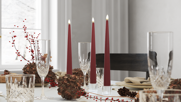 LED kertelys i farven bordeaux.