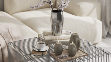 For et rolig helhetsinntrykk kan du samle lysene på et fat og variere høydene, samtidig som du holder fargene i samme palett.
