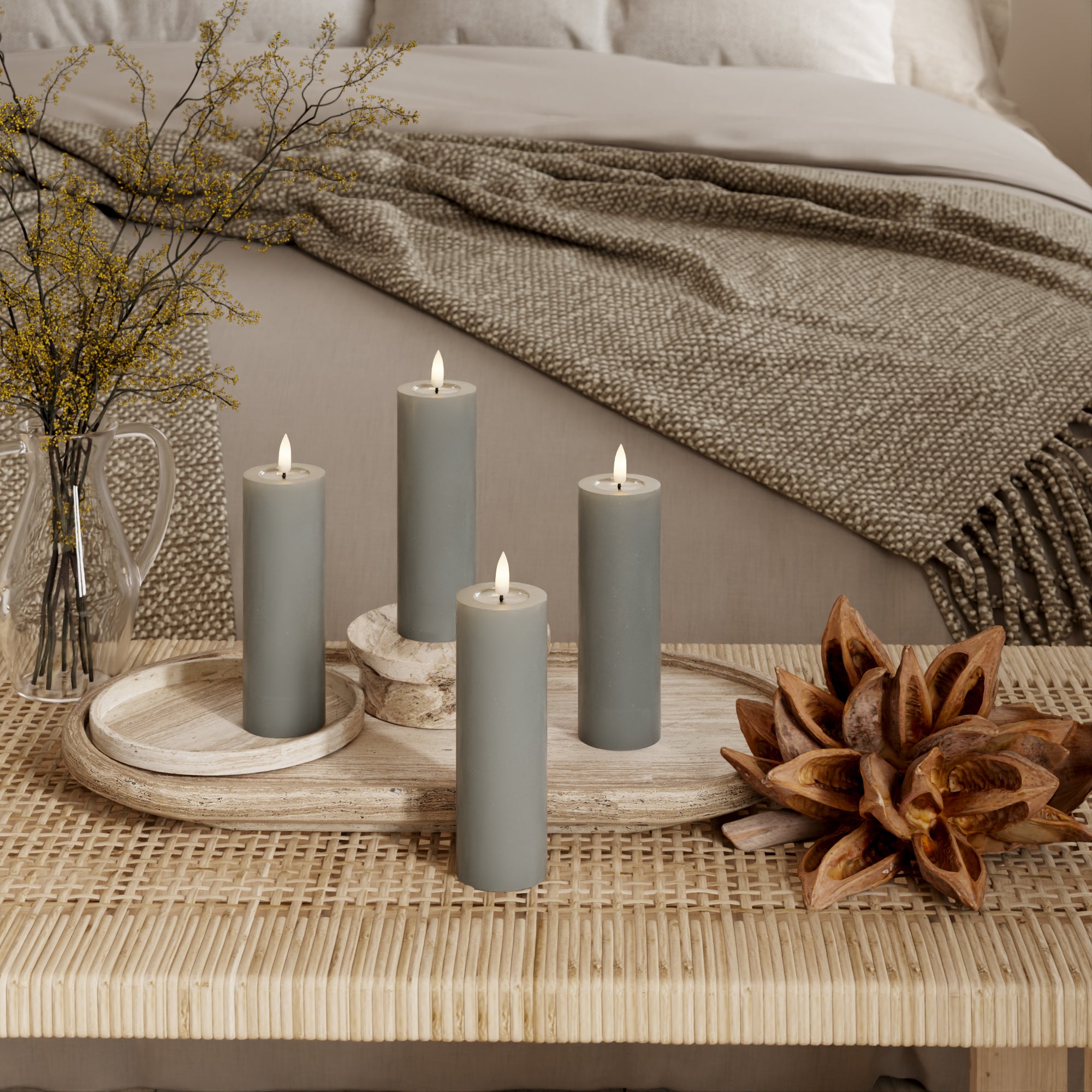 LIDERADO Vela pilar Ø 5 x 15 cm Cinzento - 4 pcs