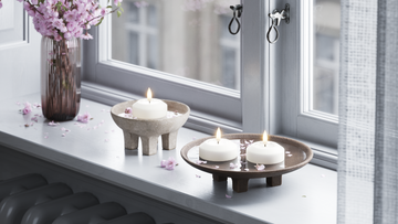 Vela flutuante são óbvios em tigelas e pratos com água. Proporciona uma atmosfera simples - tanto por dentro como por fora.
