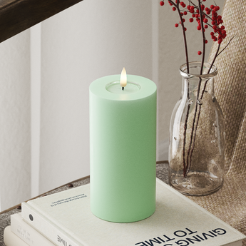Produktet kan findes i: API de funcionário, Estações, LIDERADO Vela pilar, LIDERADO Vela pilar Ø 7,5 x 15 cm, Luz interna LED, Menta, Todos, Vela pilar - Todos