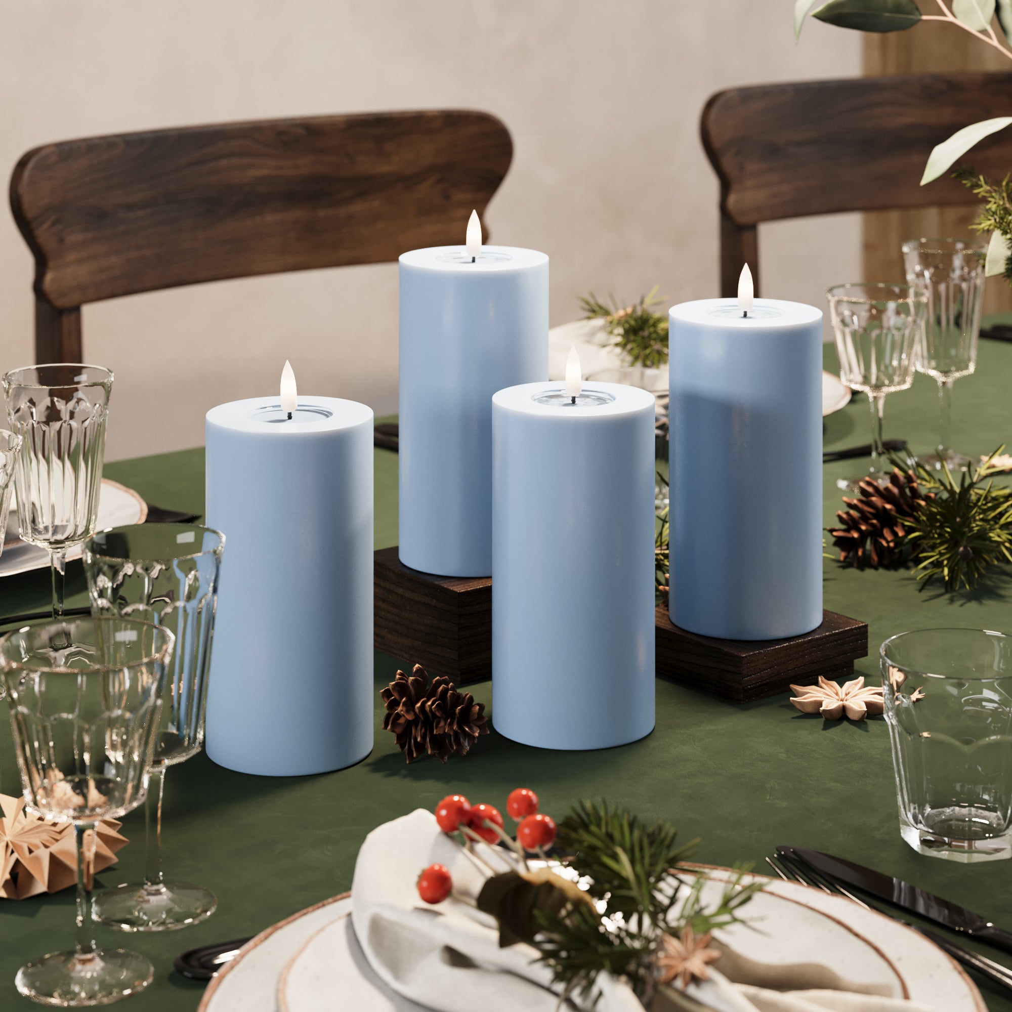 LED Blockljus Ø 7,5 x 15 cm Isblå - 4 st